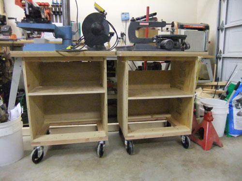 I got rid of the 2 metal shelves that held most of bench top tools. While these tools were on the metal shelves I had limited access and at times I would bypass them completely because it was too much trouble to take it out, set it up and put it away. So my solution is build individual mobile tool stands so I can roll it around to where ever I want. And the best part is that I could build drawers and shelves under the table so I can store things.